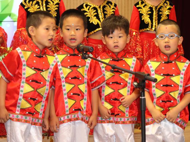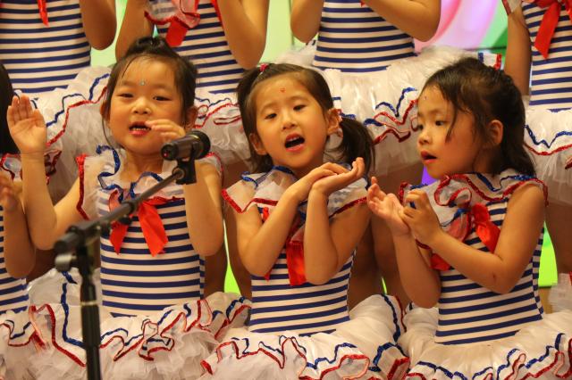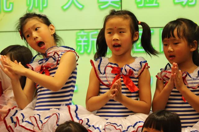 伴随着悠扬的琴声,中五班小朋友演唱的《祖国祖国我爱你》、《小白船》,让在场的老师们都好像回到了童年,经典的歌曲配上美妙的童声,真是好听!