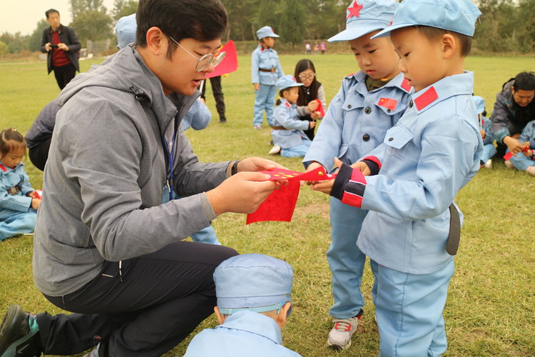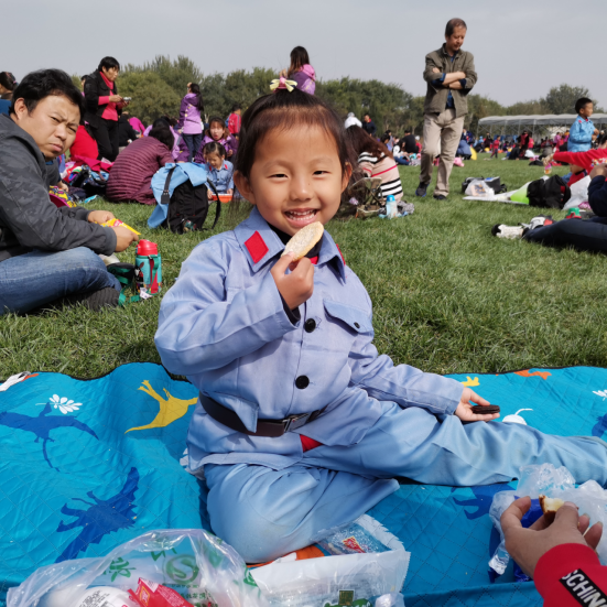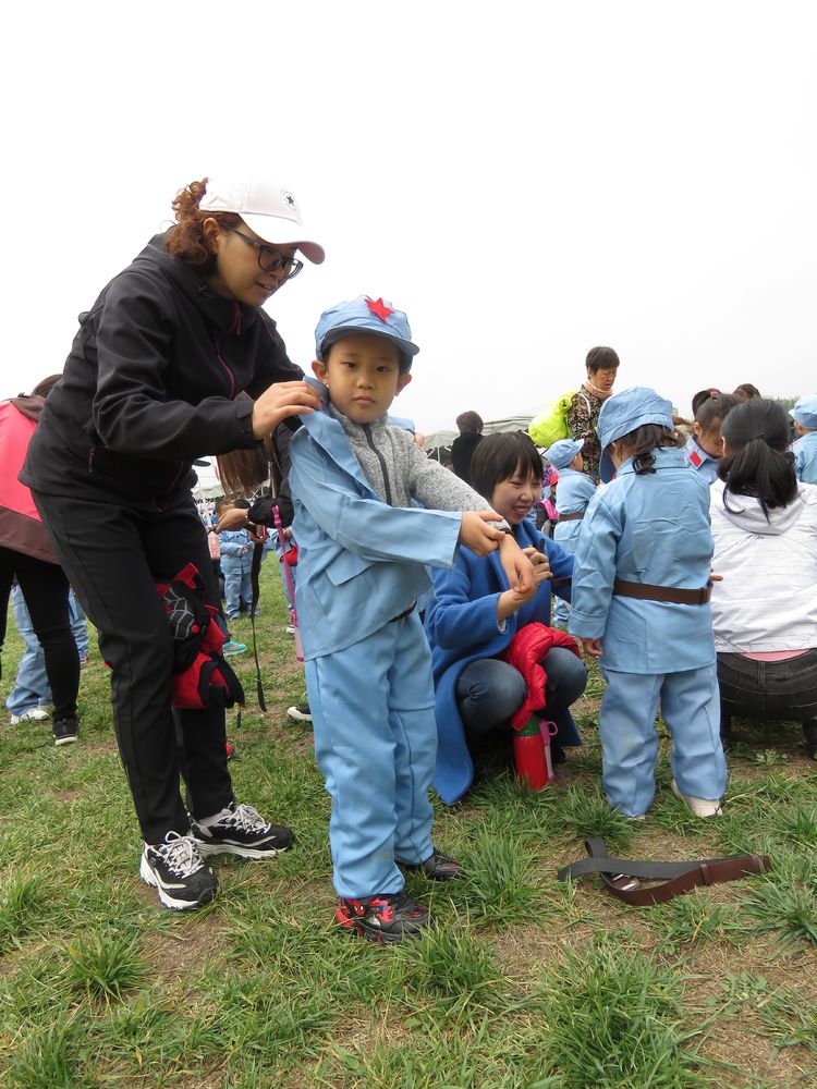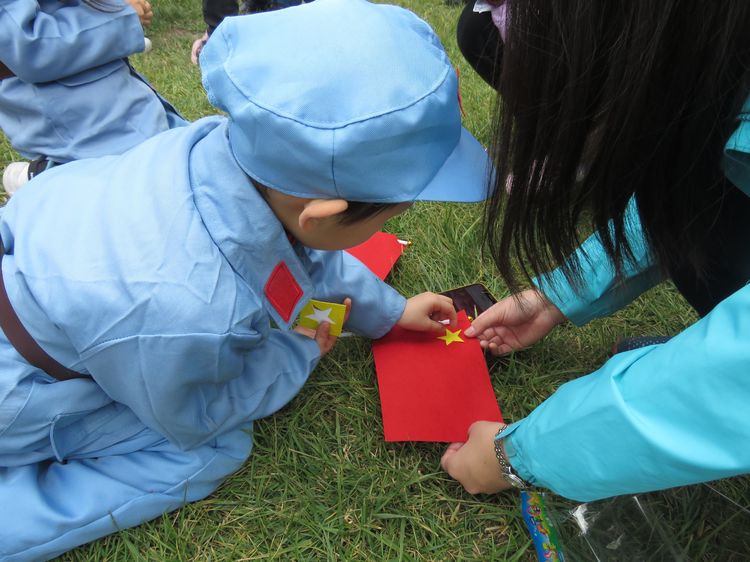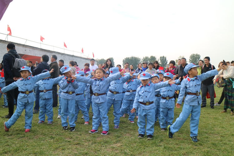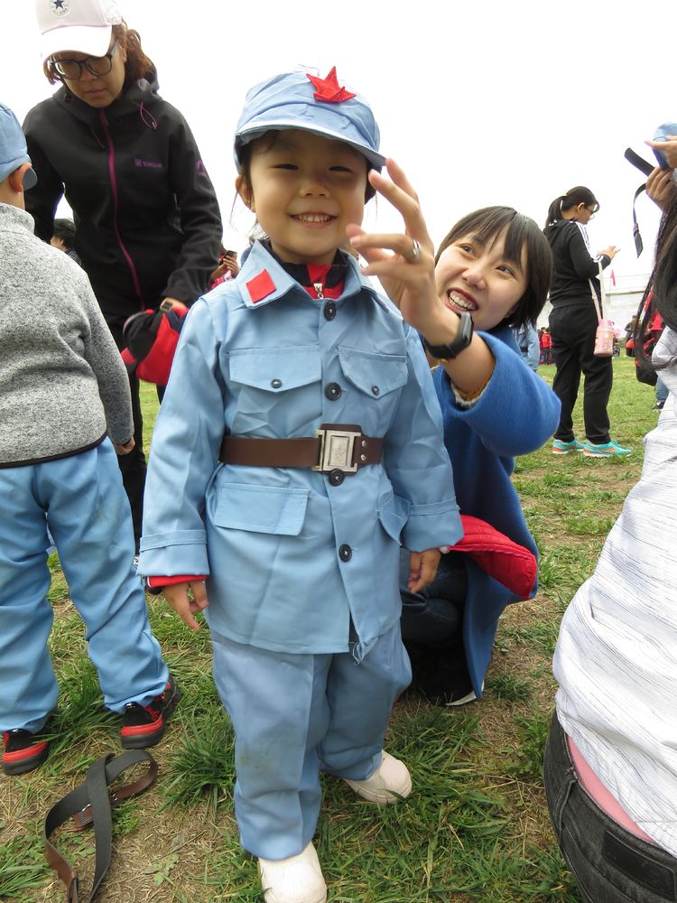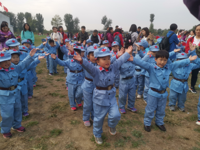 一路上孩子们满怀期待,在不知不觉中到达了目的地。一下车,九游便迫不及待的穿上红军服化身小小红军,开启了今日的秋游之旅。