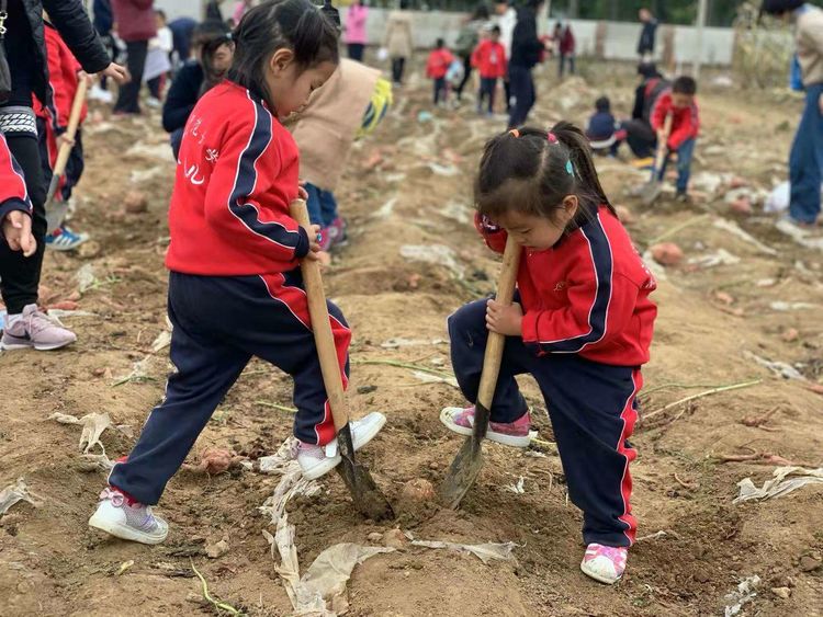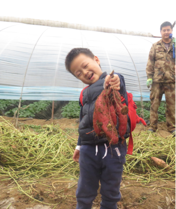 我的小袋子都装满啦!拔完萝卜,九游和好朋友一起来挖红薯!