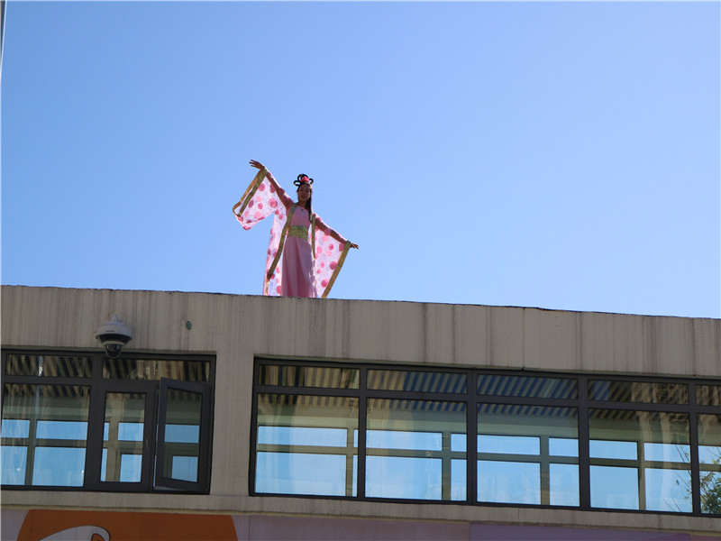 英勇射日的后羿得到了王母娘娘的长生不老仙丹交给妻子嫦娥保管,不想蓬蒙心怀不轨妄想在后羿出门时抢走仙丹,嫦娥迫不得已吞下仙丹,从此飞上月亮与后羿天各一方。精彩的演出引得孩子们一个个看得神情专注,当发现飞上天空的嫦娥时,还有孩子忍不住默默流泪,向嫦娥挥手再见。