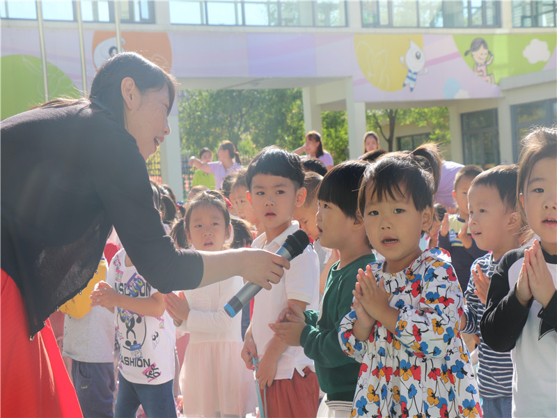 活动最后,孙园长为小朋友们送上节日的祝福,启发小朋友们感谢全体老师的辛勤付出,还在现场引导不同年龄段的幼儿用不同节奏打拍子,共同说出了不一样的"中秋节快乐"!
