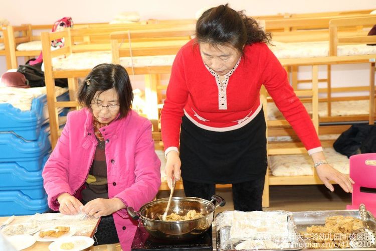 “和阿姨认真学做排叉”