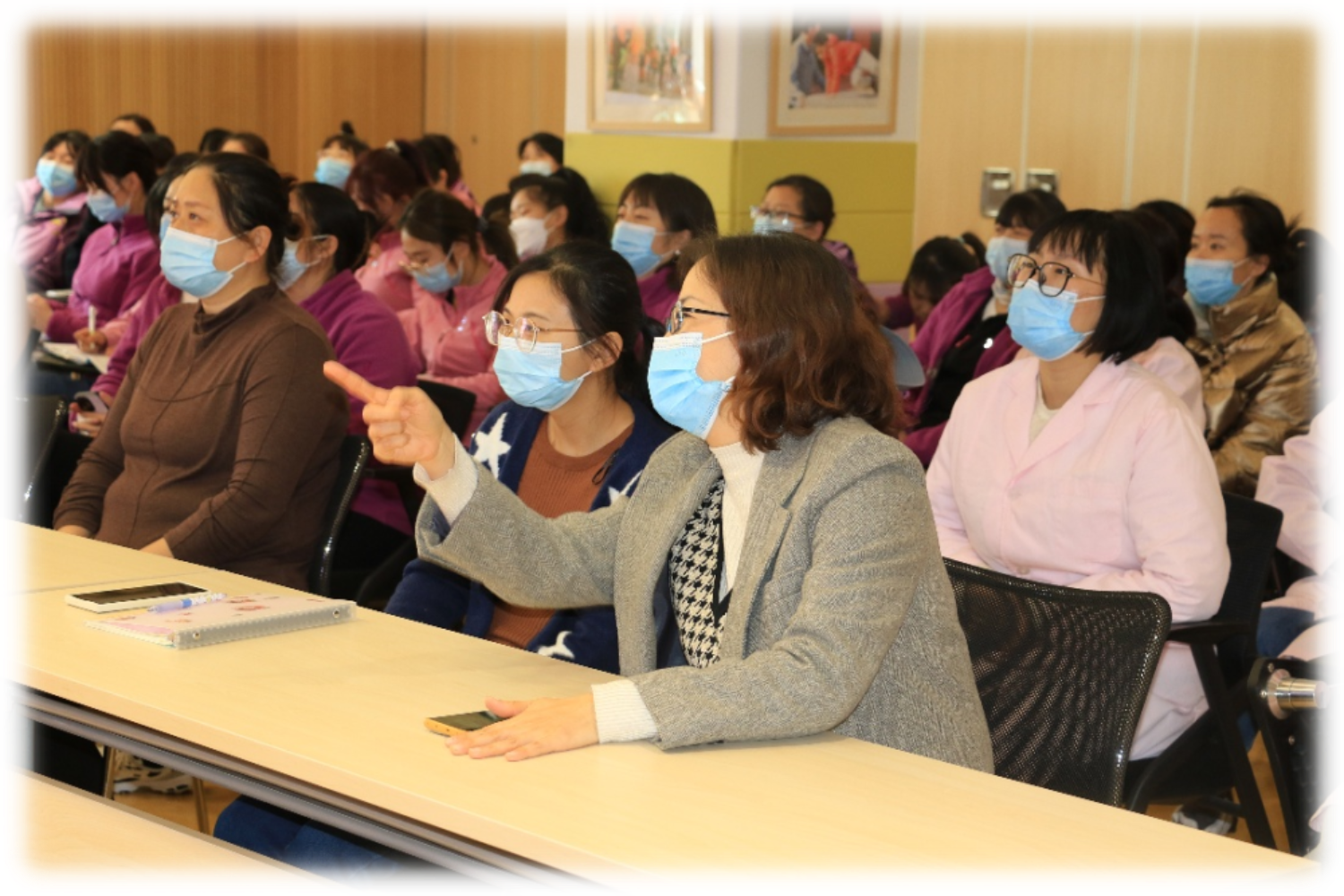在总部工会的策划下,新校区园组织各岗女教职工在分会场进行《九种体质的饮食与调节》、《形象礼仪与服饰搭配》两场讲座观看与学习。