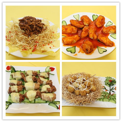 下午3点半比赛在轻松愉悦的氛围中拉开帷幕,厨房老师们自主选择好食材,便开始忙碌起来,洗、切、炒、煮……一派热闹场面。真可谓八仙过海各显神通,只见他们在砧板上刀起刀落,在灶台前放油下料,动作娴熟,一气呵成。一个多小时后,红案组和白案组的美味佳肴纷纷出炉。厨房老师们精心装盘展示、评审组成员一道道品尝,根据参赛者的刀功以及菜的色、香、味等进行现场打分。