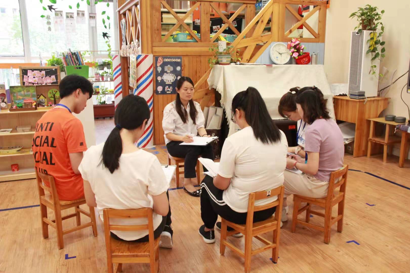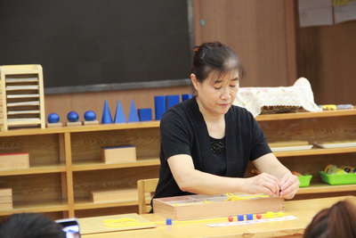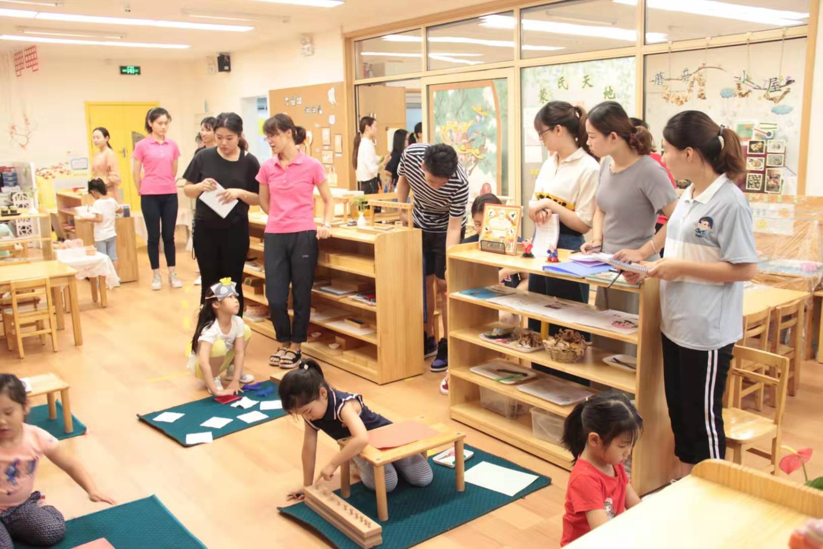 九游体育实验幼儿园望京分园保教主任杨海燕老师组织学员对蒙氏班级进行参观,并组织答疑