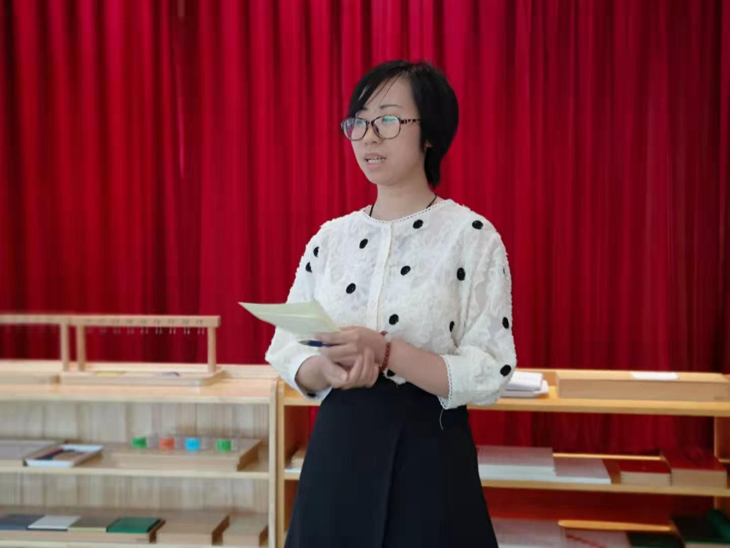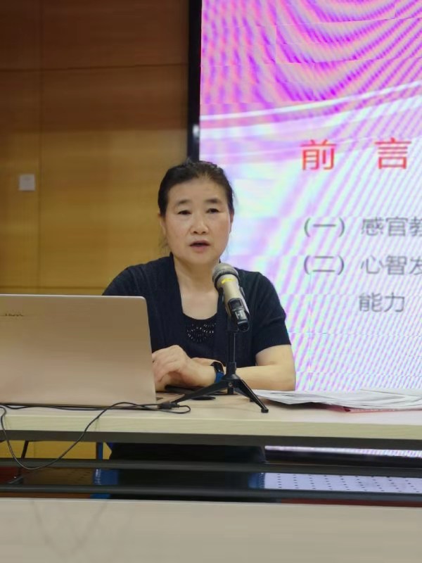 九游体育实验幼儿园校本部园保教主任滕瑾老师做《蒙台梭利环境创设与教室经营》的专题讲座