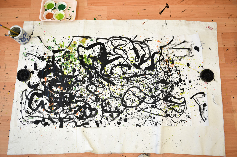 孩子们认真的体验春如线的绘画感受