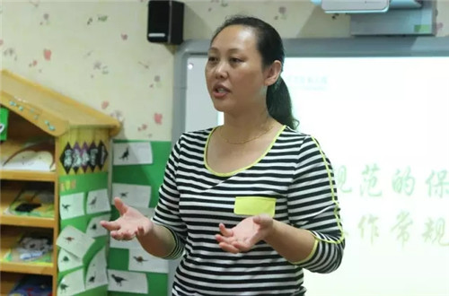 校本部园总务主任江克玲做《保育员应知应会》的培训