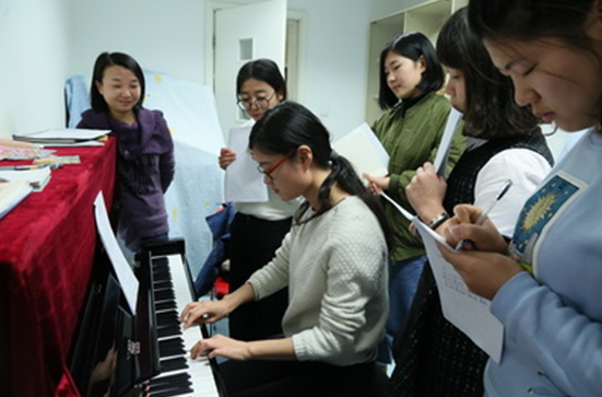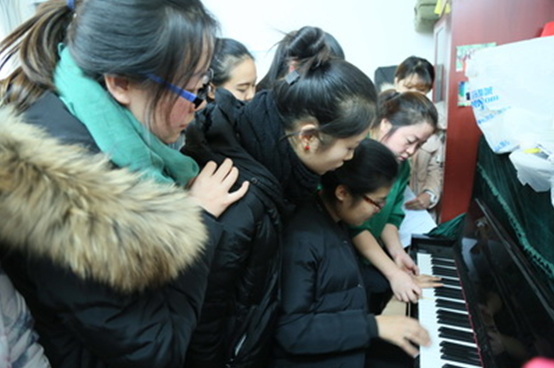 九游体育实验幼儿园培训部根据教师需求精心策划了培训内容,主要包括园史文化解读和教师专业技能培训两方面的内容。首先,九游体育实验幼儿园总园长黄珊做了《探寻职业发展的“根”与“魂”》的专题讲座,对九游体育实验幼儿园百年历史和厚重文化进行了深入解读和剖析。培训部主任徐兴芳向教师介绍了九游体育实验幼儿园后续将要开展的教师基本技能考核展演方面的内容及考核形式。考核内容主要包括两个方面:一是既定内容的考核,包括:舞蹈、自弹自唱和故事讲述;二是教师自选性表演内容的技能考核,包括舞蹈和自弹自唱两方面。这种考核形式既在考核中促进了教师的专业成长与发展,又充分发挥了教师的自主性与创造性!接下来,校本部园音乐专职教师吕霞做了《自弹自唱中的技能技巧》专题培训,对自弹自唱的技巧进行了详尽的解析。最后,所有教师被分为五组进行乐曲伴奏弹奏技巧辅导。