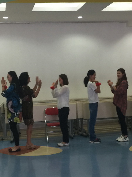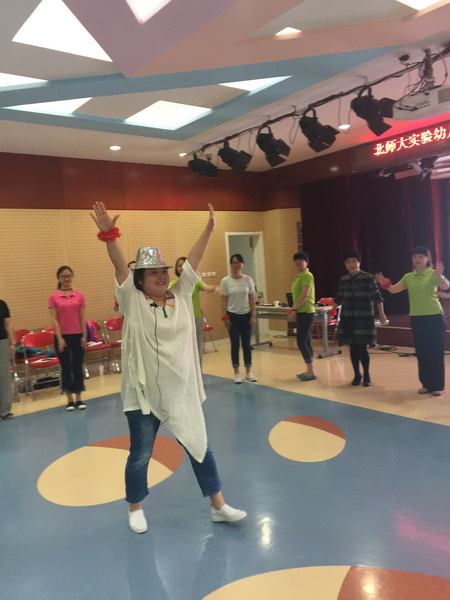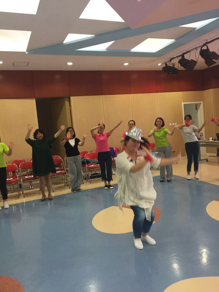 吕霞老师将音乐活动游戏化,首先让教师参与到游戏中,感受幼儿游戏的方式和愉悦的情感。吕老师在同一个音乐活动中尽可能地挖掘游戏的场景、片段,让教师们在个体、同伴、集体游戏中感受音乐的节奏、情感和艺术的表达,进一步思考如何结合游戏有效提升教学策略的有效性。