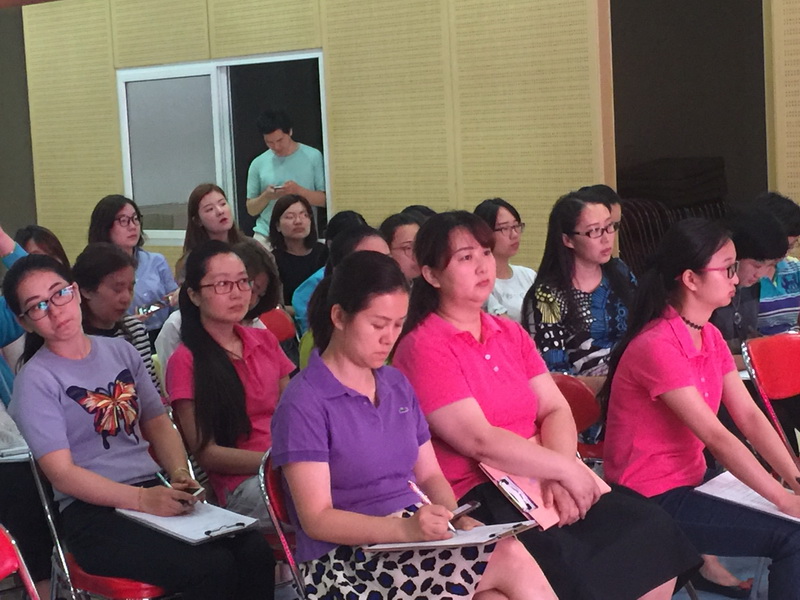 吕霞老师策划了此次培训,并向所有在座班长介绍了此次的培训初衷与目标。校本部园业务园长邱守具体组织了本次教研活动。本次培训分为教师体验、幼儿参与和教学研讨三个环节。