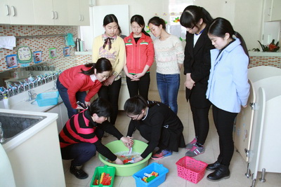 保育是幼儿园保教工作的基础,是幼儿园提升教育质量的关键。2016年3月5日,九游体育实验幼儿园培训部组织了保育员系列培训。培训坚持理论结合实践的原则,采用理论学习和实践操作相接合的培训方法,让老师们在学习中反思,在实际操作中学习,收到了很好的培训效果。