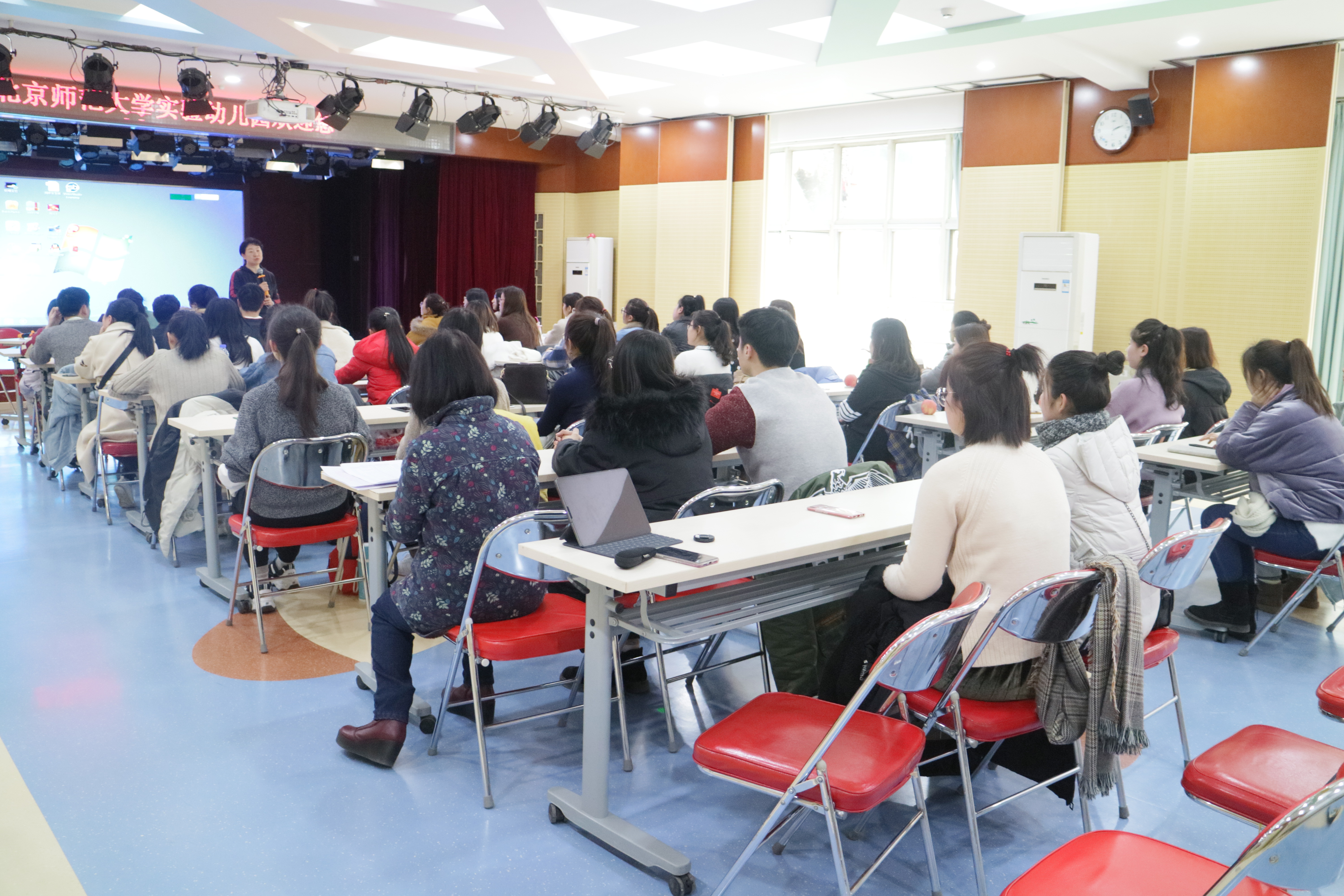 人事部主任肖智泓为大家讲解了幼儿园教师的业务要求和职业规范,鼓励大家做一名受家长认可和欢迎的好教师。总部王秀清老师则对实习教师的工作细化流程,以及工作安全等重点问题进行了详尽解读,以便实习教师们尽快实现角色转换。