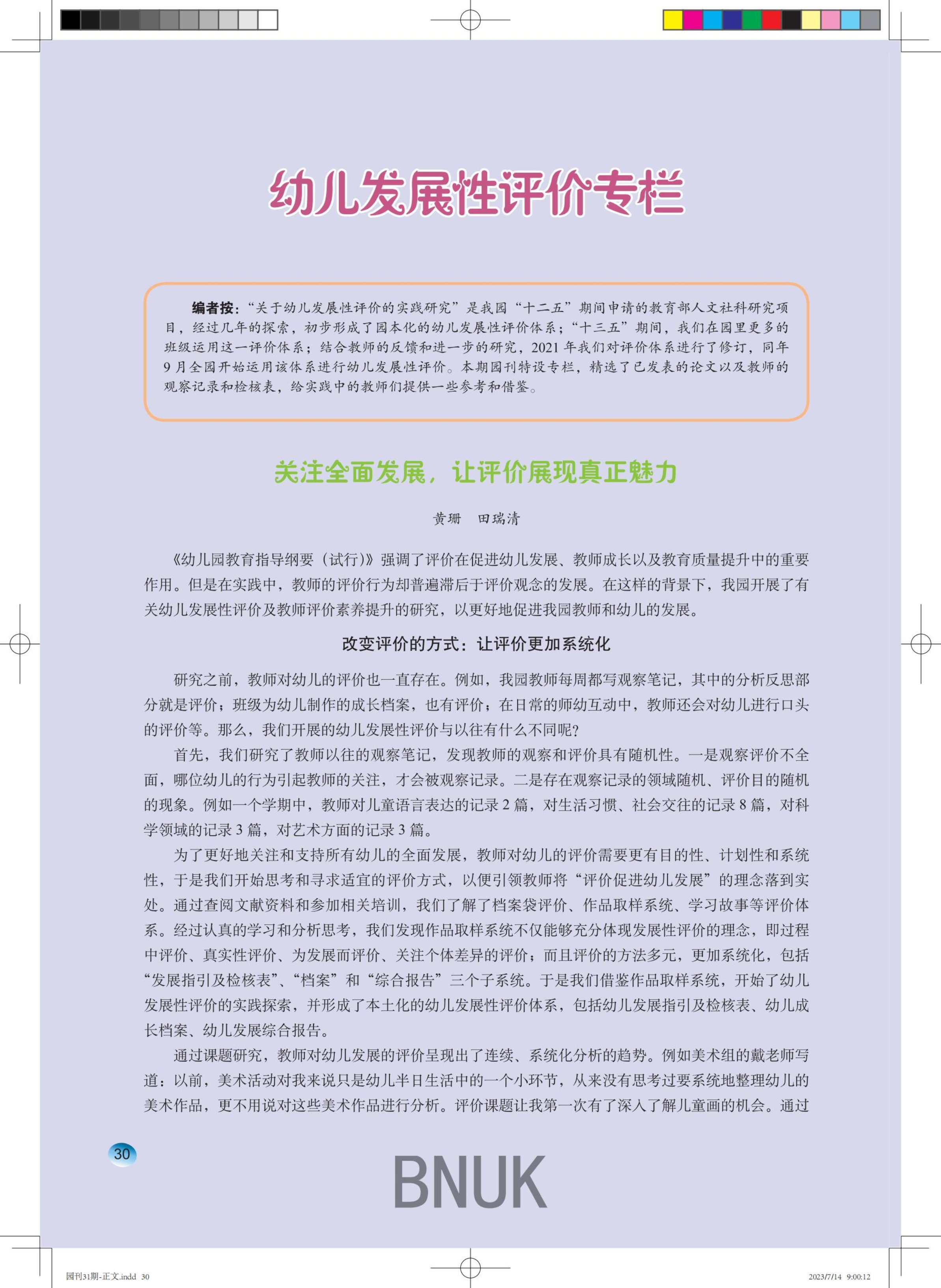 第31期《师大新芽》之“幼儿发展性评价专栏”