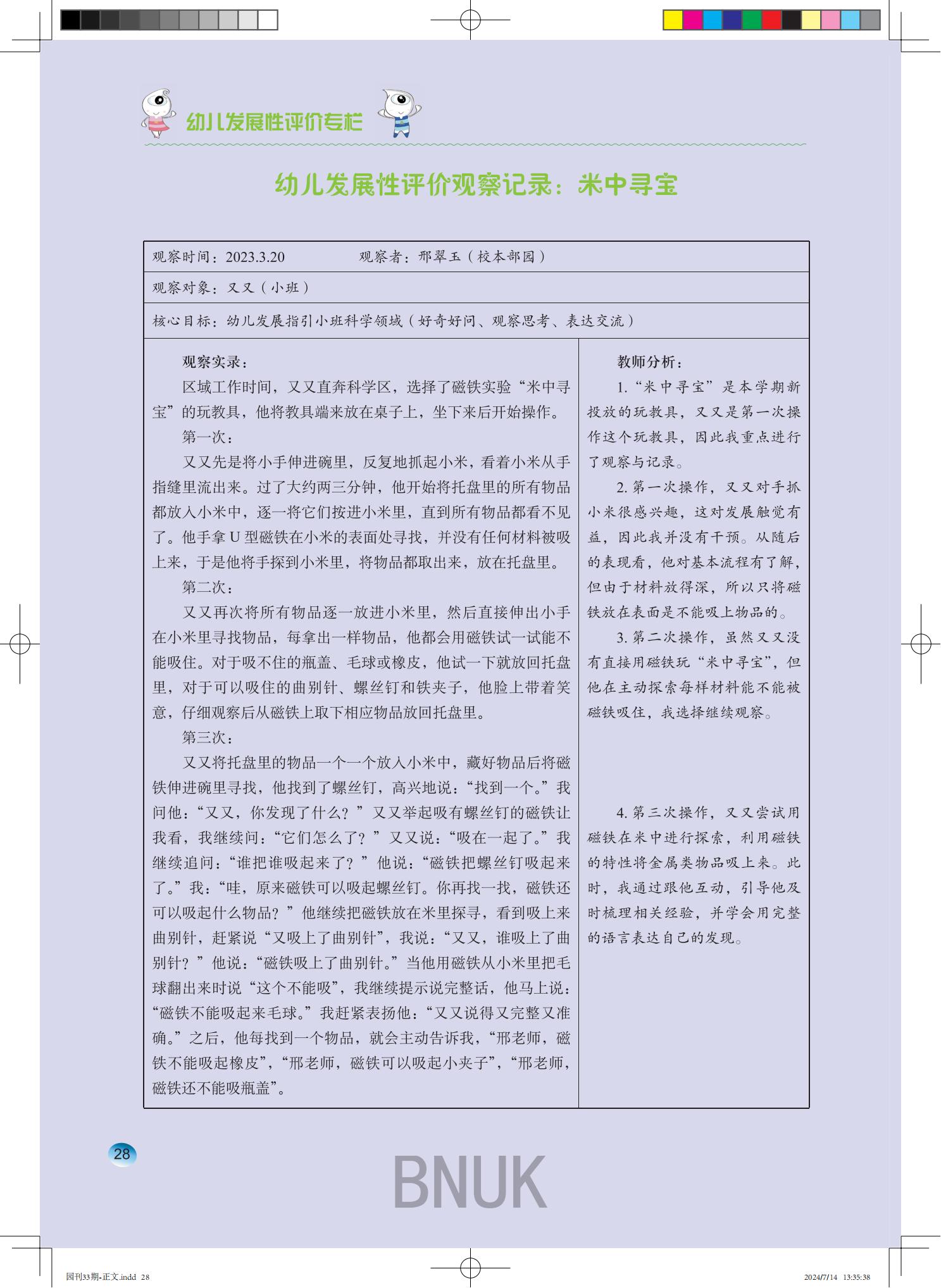 第33期《师大新芽》之“幼儿发展性评价专栏”