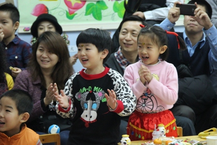 2012年12月28日下午,奥林分园“热热闹闹红红火火中国年”的新年庆祝活动之班级亲子联欢会热闹开场。不同的教学班根据班级实际情况精心组织,开展了丰富多彩、别开生面的联欢活动。联欢会的节目和游艺形式多种多样,孩子和家长都积极参与,其乐融融,大家用动听的歌声、优美的舞姿表达对新年的祝福,表达对未来生活的畅想。