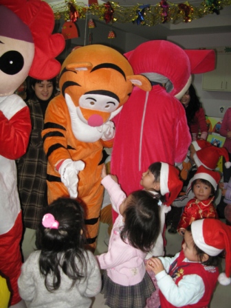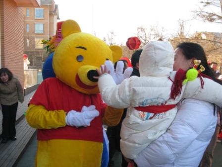 今年“健康快乐”迎新年的重头戏—亲子联欢活动有两大看点;一是龙腾虎跃;舞龙舞狮、二是福娃送福,卡通拜年。