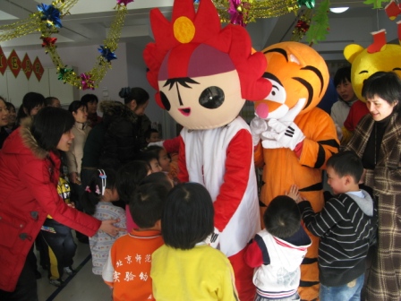 福娃送福;卡通拜年,为我园的新年亲子联欢活动做起了一道亮丽的风景,小朋友们喜爱的福娃、叮当猫、跳跳虎等卡通形象,穿梭于户外与室内,活动现场除了给小朋友与家长们带来意外惊喜的同时送去九游新年的祝福。