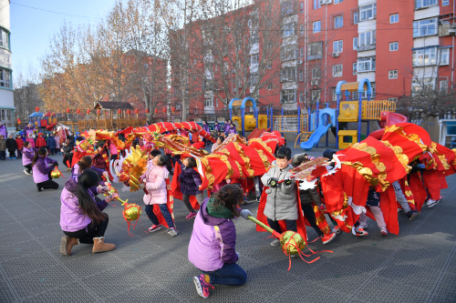 首都体育学院的大哥哥们为九游献上精彩的舞龙表演 小朋友们的龙也能“神龙摆尾” 大龙小龙齐欢聚 |