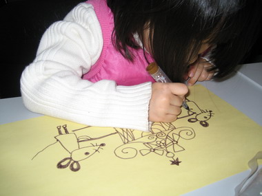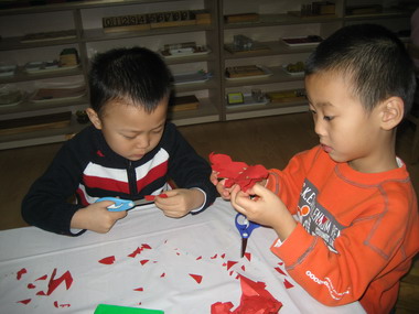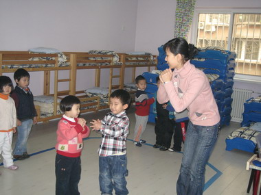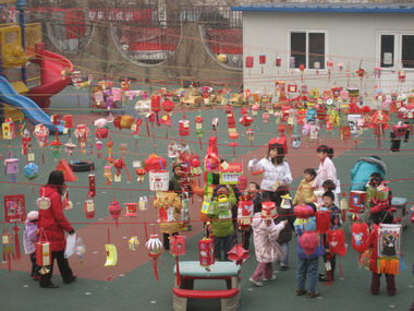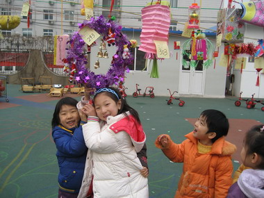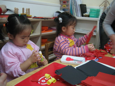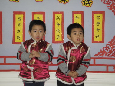 小朋友们观看动画片:年的传说、十二生肖、哪咤闹海