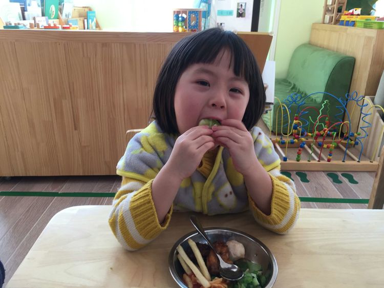老师们为孩子们取来自助大餐