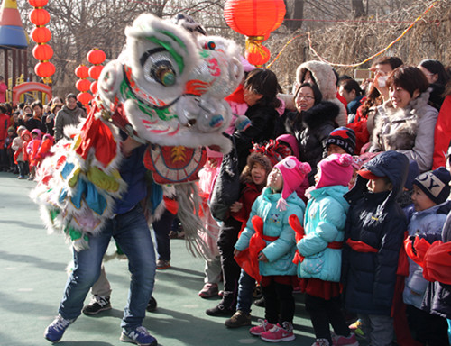 班级联欢会后,全园幼儿与家长分两场来到操场观看舞龙舞狮旱船表演。由全体大班幼儿带来的舞龙及滑旱船的表演获得了阵阵掌声,中小班幼儿及家长也挥舞起火红的绸带,在空中画出一道道喜庆的弧线。
