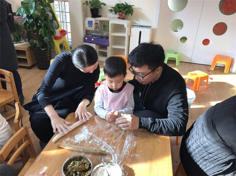 全家一起包饺子