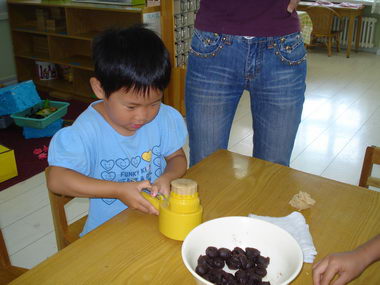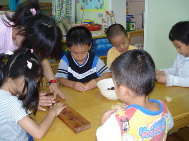 快看,这样一挤漂亮的月饼就出来了,真好玩!