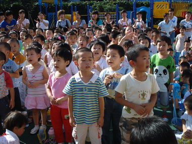 中班小朋友与老师们共同演唱“小月亮”