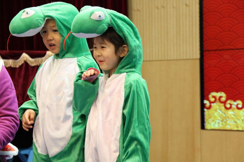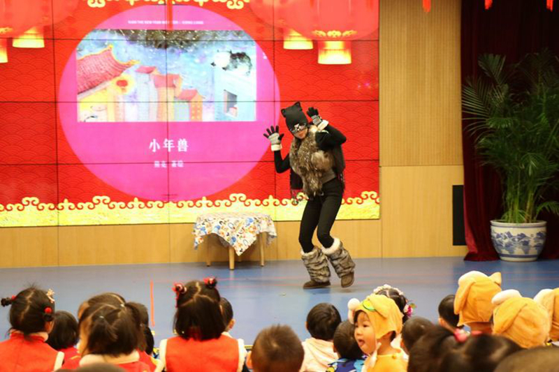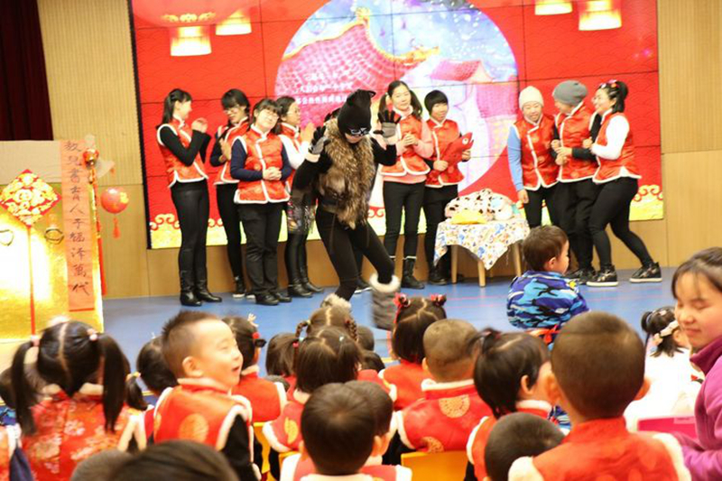 “家园团圆一家亲,吉祥欢乐中国年”,家长朋友们也来带来精彩的童话剧《年的故事》。欢笑声中,小朋友们知道了中国传统文化:“年”的故事。