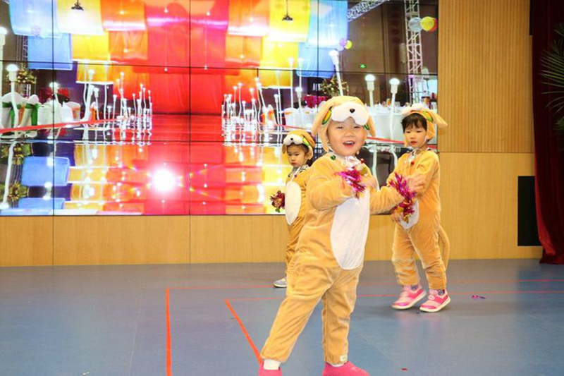 瞧!一群可爱新年小狗上台了,小一班小朋友带来《狗狗减肥操》,动感十足,新年大家也别忘来跳操锻炼身体哦~