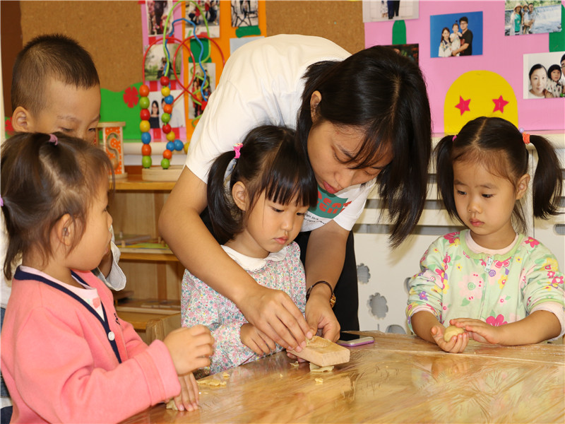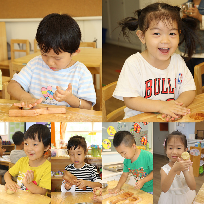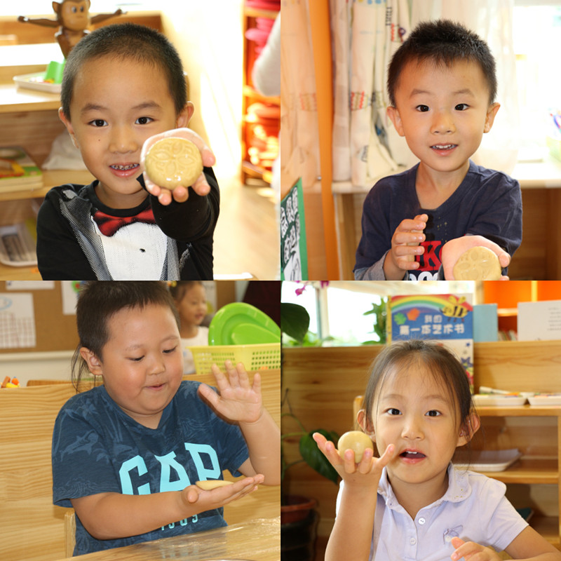 除了精彩的演出活动,幼儿园还精心准备了各类工具和材料,由老师指导孩子们做月饼,亲自体验制作月饼的快乐。孩子们在老师的指导下跃跃欲试,一包,一团,一压,一拍,一个月饼就这样做好啦!中秋佳节话团圆,圆圆满满乐开怀,孩子们在丰富的活动中体验着传统节日的快乐,感受着我国传统节日的文化魅力!
