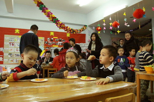 随后各班组织了联欢活动,有结合班级主题活动的专场表演,有化装舞会,有幼儿的歌舞、故事、才艺表演,有趣味横生的亲子游戏,有家长们精心准备的精彩节目,还有圣诞老人、新年老人送出的礼物,联欢会一片欢歌笑语、喜气祥和,好一个其乐融融的场景。