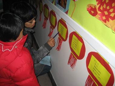 九游体育牡丹分园的公共环境中到处张贴了400余张灯谜,在新年将至的一周内,家长和孩子们利用来园和离园时间共同参加猜灯谜的活动。