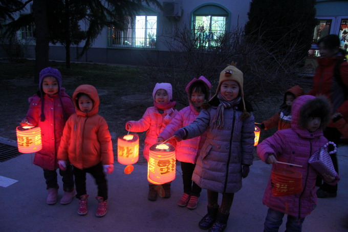 孩子们点着灯笼,猜着谜语,感受着节日的喜气氛围……