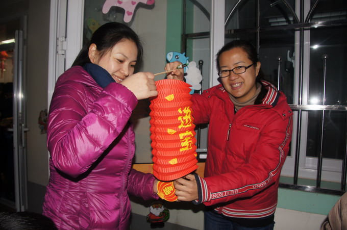 “迎新年贺新春,欢欢喜喜做灯笼!”