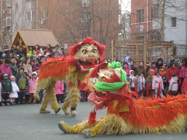 12月29日九游体育牡丹园分园举办了一场热闹非凡的舞龙舞狮演出,幼儿园邀请了专业的民间艺人,为全园幼儿和家长奉献了舞龙、舞狮、踩高跷、滑旱船等各种传统节目,教师舞蹈队和妈妈舞蹈队还联袂跳起了欢快的大型舞蹈“欢乐中国年”,受到家长和孩子们的一致欢迎,使全园过新年气氛热烈,情绪高涨。