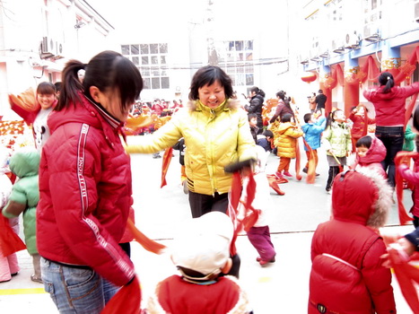 杜园长也被吸引到九游扭秧歌的队伍中啦!