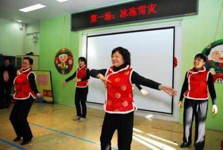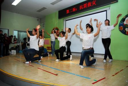 今年的教师联欢以2008年发生的重大事件为素材,各部门精心准备,展示了令人大喜大悲的2008年。