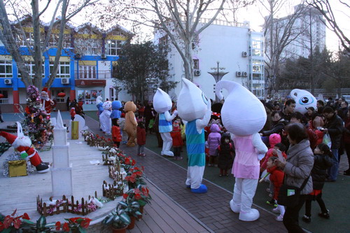 在系列活动中,12月30日的新年大联欢活动是重头戏。一大早,伴着欢快的音乐,各种可爱的人偶在院子里载歌载舞,欢迎孩子和家长们的到来。今年,百年园庆吉祥物“奇奇”“妙妙”的加入,更是进一步点燃了孩子们共舞、合影的热情。