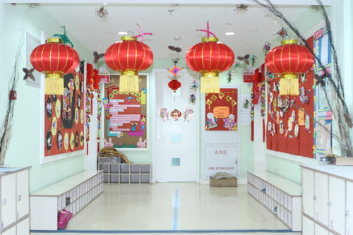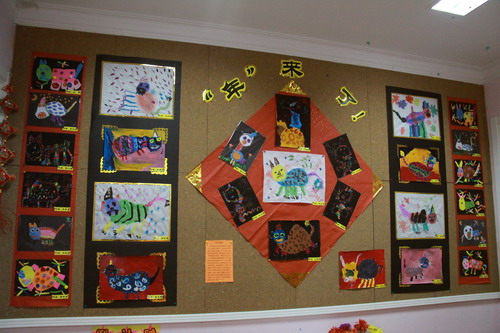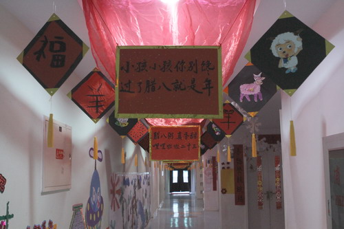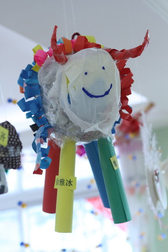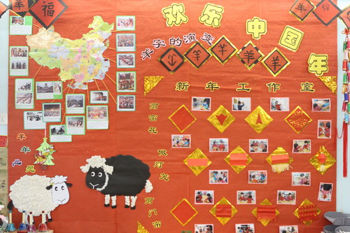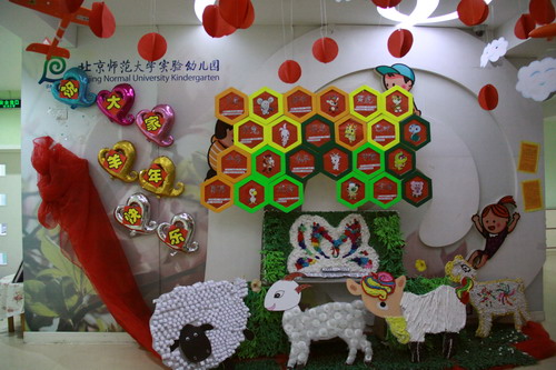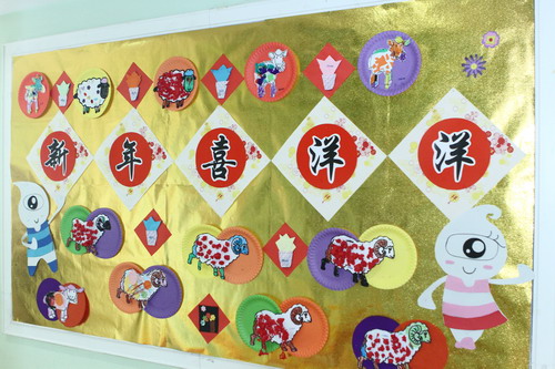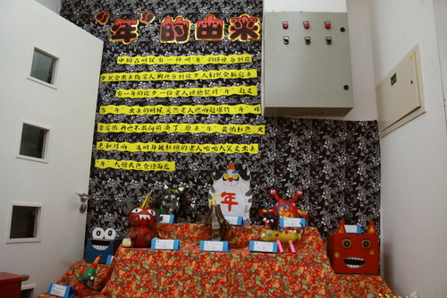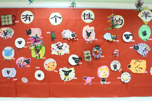 环境中,当形态各异的“羊”,关于“羊”的成语、“羊”的挂饰布满楼道,当各具特色的灯笼高高挂起,当富有韵味和传统年味的童谣映入眼帘,年的味道便愈发浓郁。环境中还呈现了幼儿对中国传统故事中“年”的形象,各种不同想象、创意、富有个性的表征,其大胆、童趣、多样化的表达让九游不禁惊叹幼儿的艺术想象力与创造力。九游坚信,在孩子们参与环境布置的过程中,在欣赏环境中丰富多彩的展品与作品的过程中,环境作为隐性课程的作用也得到了充分体现。