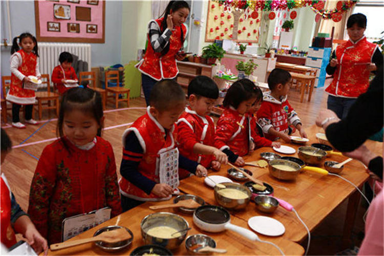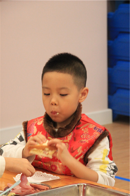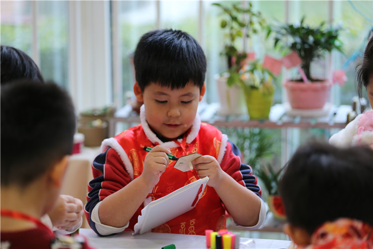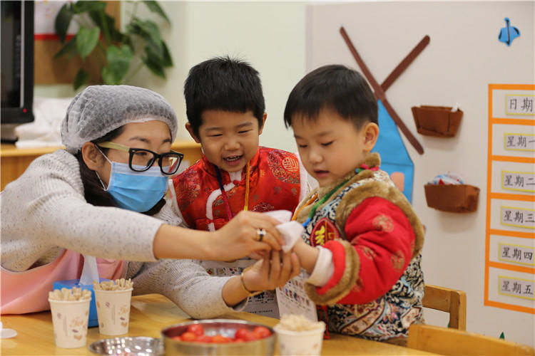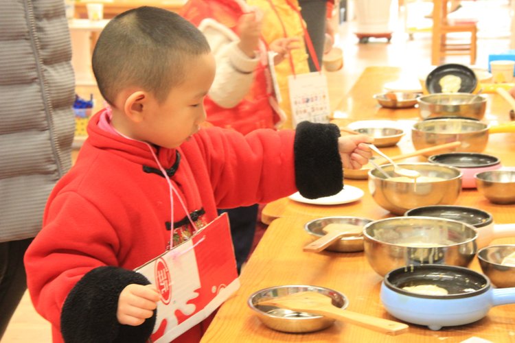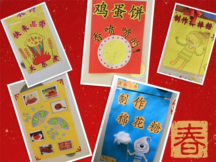 2017年1月6日奥林分园开展了一年一度的新年庙会活动,“逛庙会”是幼儿园的传统庆新年活动,也是孩子们最喜爱最期待的新年活动之一。每个班级准备一项手工制作活动、一种食品制作活动,在制作项目的选择上融入中国传统文化元素,如:食品制作体现地域饮食文化,东北的关东煮、老北京的炸麻花、卷饼、做饭团等等。还有融合中国传统文化的美术制作活动:版画制作、剪纸、做灯笼、做鞭炮等。
