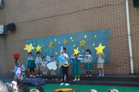 2015年9月27日奥林分园举行了迎中秋的庆典活动,全园幼儿观看了由家长表演的童话剧《嫦娥奔月》和师幼共同表演的《月亮姑娘做衣裳》。精彩形象的表演,让幼儿不仅对中秋节的来历、月相的变化有所认识,而且对幼儿是一次很好的中华传统文化的教育。