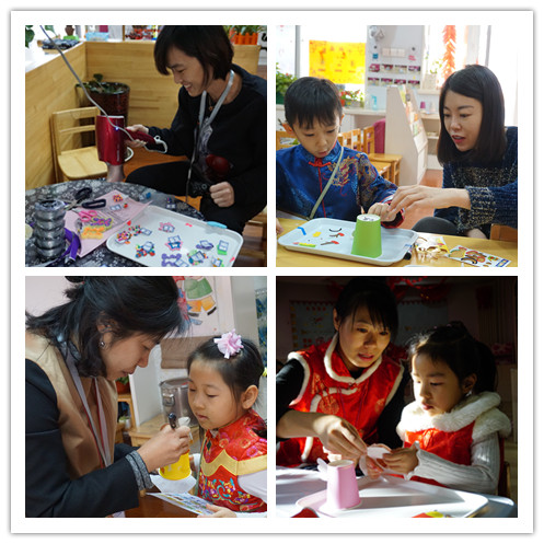 祥和庙会,一派祥和。家长志愿者们各个尽职尽责,嘱咐孩子注意安全的,扶着小班小朋友上下楼梯的,为孩子们照相的,辅助老师指导项目的……一上午的辛苦,化作一句话“
