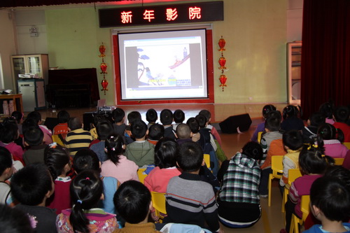 元旦之后,幼儿园里的新年影院活动隆重上演了。孩子们以年级组为单位,津津有味地欣赏了《年的故事》、《九色鹿》、《咕咚来了》等经典动画片,在生动、活泼的形象中过足了动画瘾,也为孩子们接下来体验虎年习俗的系列活动奠定了良好的知识基础和心理基础。