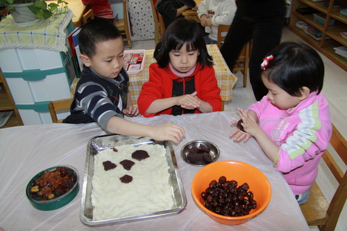 在孩子们的记忆中,年味儿总是香甜的,总是与味蕾的满足密不可分,它离不开好吃的饺子、脆香的麻花、甜甜的糖葫芦……为了让孩子们体验传统春节习俗中的美食文化,丰富有关食品制作的相关经验,由孩子们DIY的传统美食在各班开展得有声有色!
