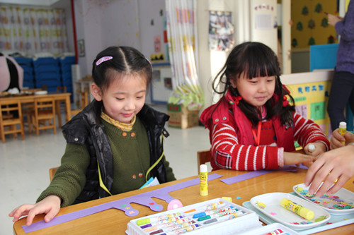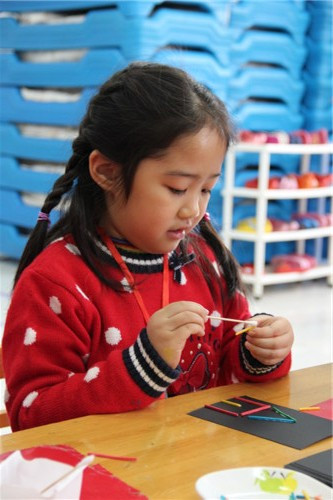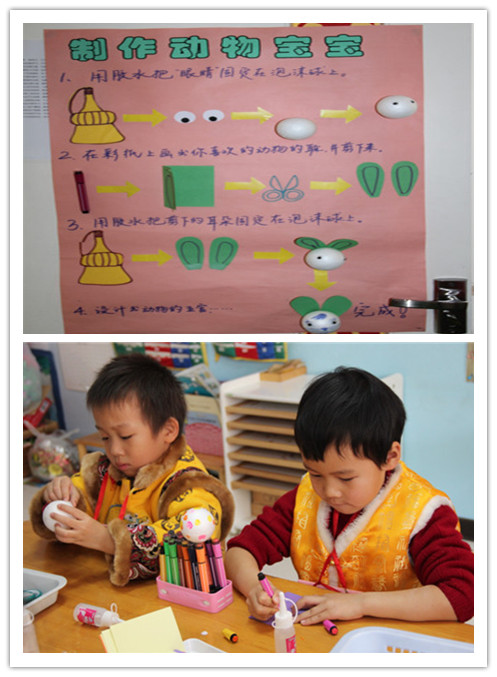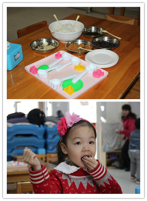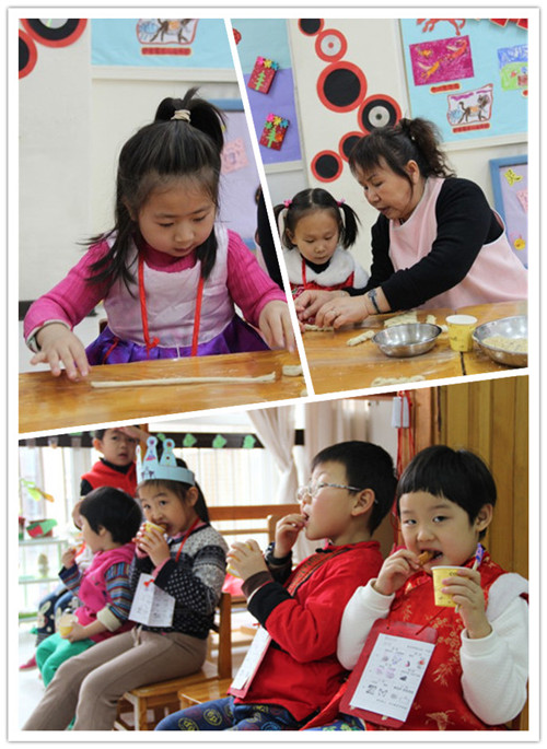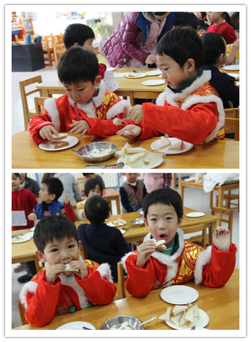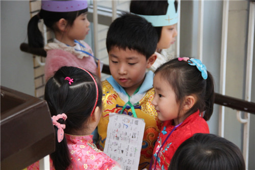 2013年12月26日早9:00,随着欢快的新年音乐声起,一年一度的新年逛庙会活动开始啦!孩子们对这一天期待已久,在老师们前期的经验铺垫基础上,孩子们都十分有计划的奔向目的地,部分大班幼儿甚至自制庙会路线图,力争参加所有项目。逛庙会活动过程中,每一间教室都能看到孩子们专注的自制美食、满脸幸福的品尝劳动成果;每一项游艺项目都能看到孩子们互相帮助,合作完成作品;每一个楼层都能看到孩子们欢天喜地的穿梭——好朋友手拉手、哥哥姐姐照顾着弟弟妹妹。一张张快乐、满足的笑脸、一阵阵天真、大胆的笑声是孩子们送给辛勤工作的老师们最好的回报与奖励!