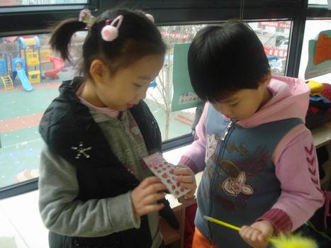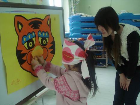 蒙眼贴老虎鼻子 数数自己的奖品小贴画,收获很大!