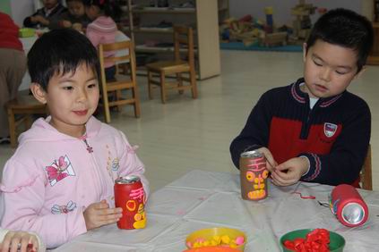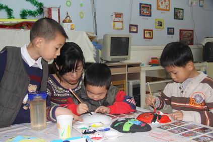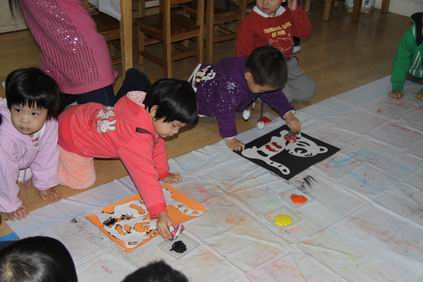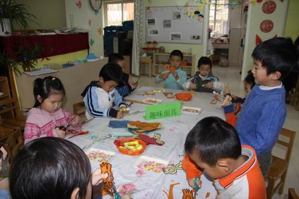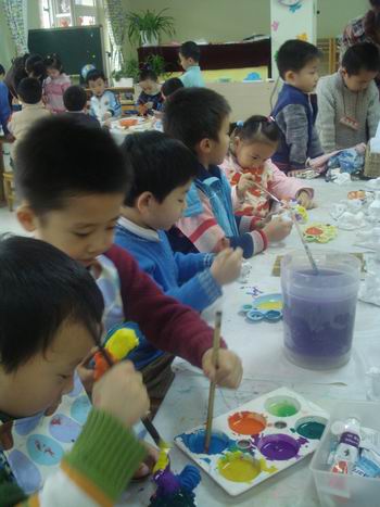 快快乐乐奔向自己喜欢的游艺项目 把白色的瓷器“虎”染成彩色