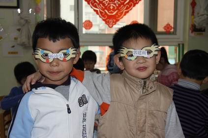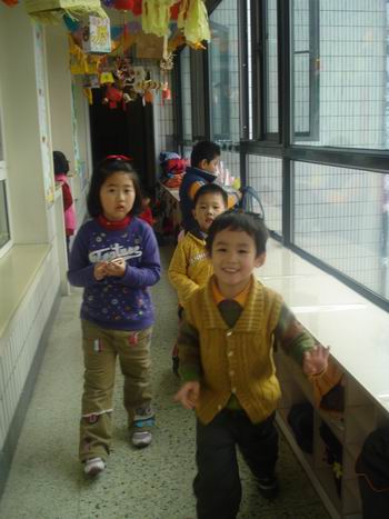 孩子们手拉手奔向不同的教室、不同的游艺活动。楼道里、教室里,到处可以看见孩子们活跃的身影和喜庆的笑脸……